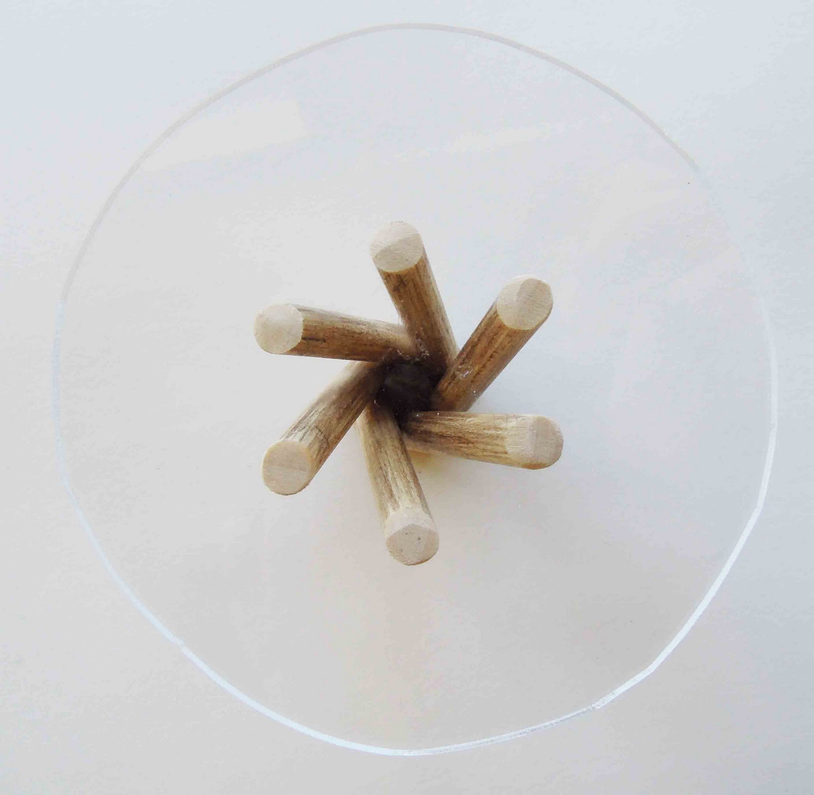 So I was making my final model of the table. I cut the pieces on the ban saw and I used super glue to hold it all together. I my sketch model I held it together with a rubber band, but the rubber got stuck on the wood with the super glue. So this time I was using my tape (not to sure if it will be OK for drafting after this project) to hold the wood in place while I glued it. It took some work to get the wood out of the tape after the glue was dry. Then I sanded the top of the dowels and the bottom to make it stand evenly.